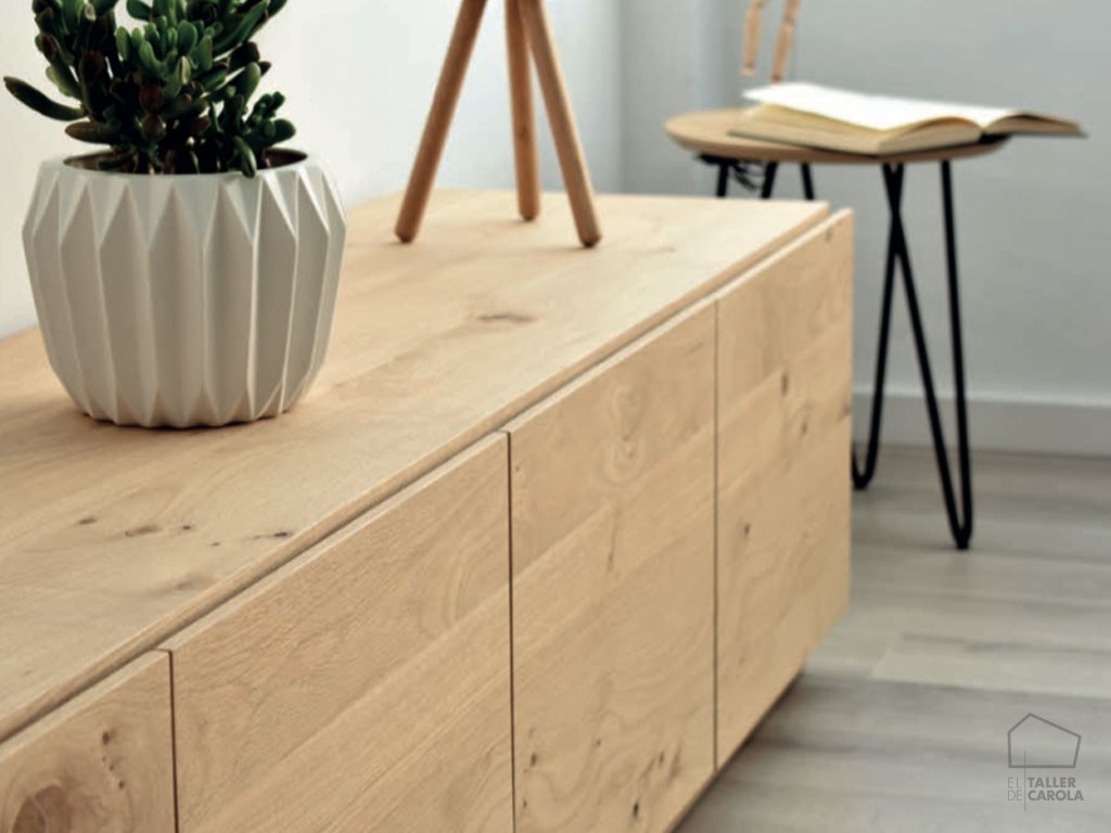 El roble le da un carácter cálido a la pieza y su diseño hace que sea una pieza fácil de acoplar en distintos ambientes.