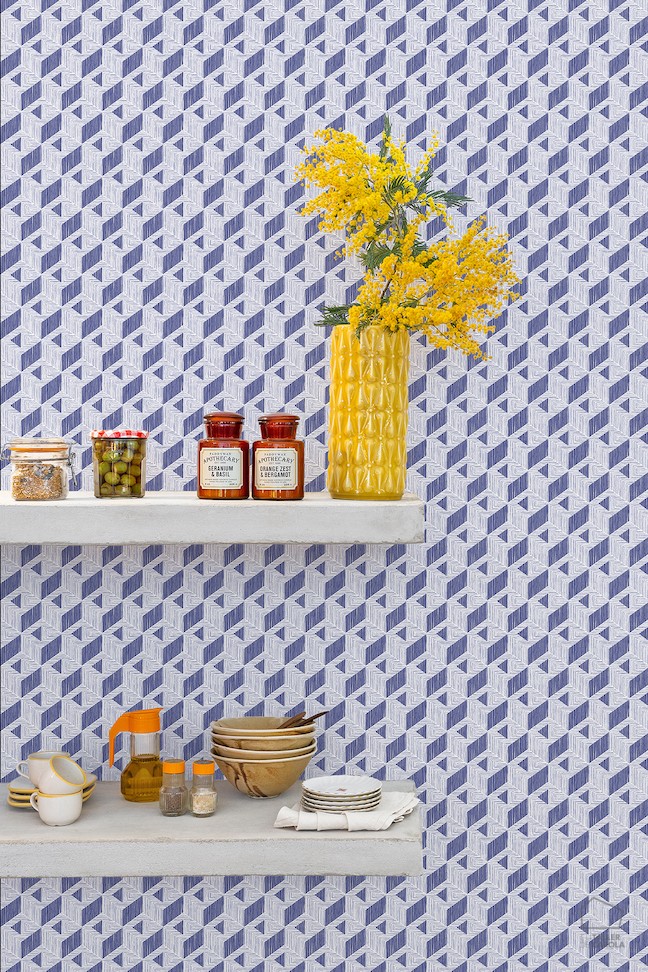 A nosotras este papel pintado nos gusta mucho para diferentes espacios, como entradas, cocinas y zonas de paso.