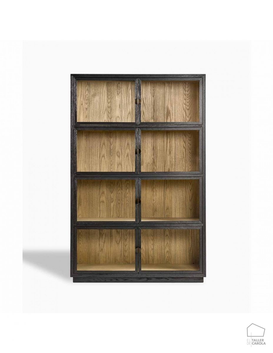 La Vitrina Roble Negro y Cristal es una vitrina de puertas abatibles en madera de roble negro.